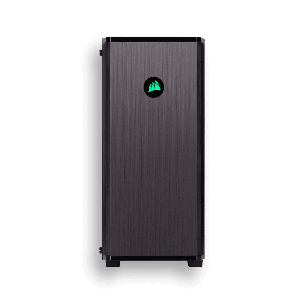 Definido por un diseño aerodinámico y un logotipo de CORSAIR con retroiluminación en la parte delantera, con un ventilador RGB con seis LED RGB personalizables.